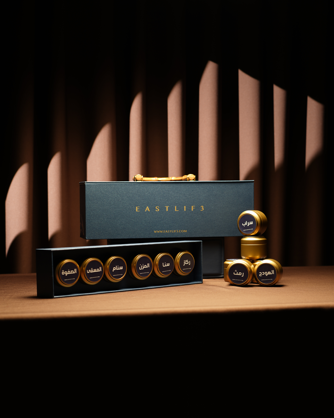 يحتوي هذا البوكس على ١٢ ابتكاراً من العود المسقّى والبخور، كل نوع بلمسته الخاصة وثباته العالي وفوحانه المميز. فقط ضع قطعة، ودع الأجواء تمتلئ بعبقٍ آسر يجمع بين الأصالة والفخامة.